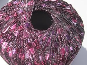 100% Nylon with approx 82 yards 25g that knits to 4.5 sts per inch on a US 7 needle. Made in Italy Ladder Ribbon Yarn