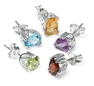 Sterling Silver Peridot, Garnet, Amethyst, Blue Topaz and Citrine Individually Boxed Stud Earring Set